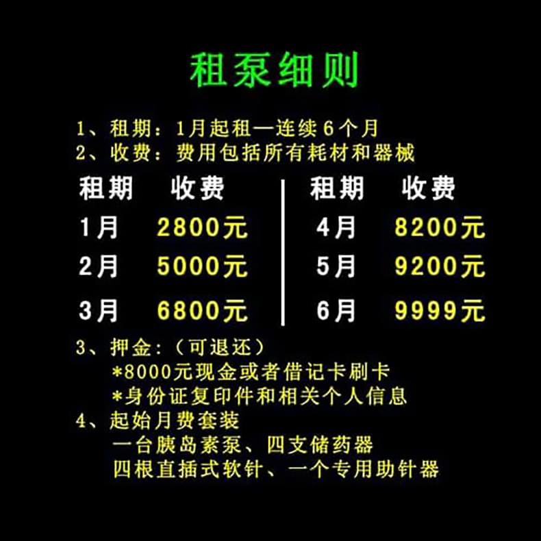 4、押金:胰岛素泵8000元,用完可全额退款。